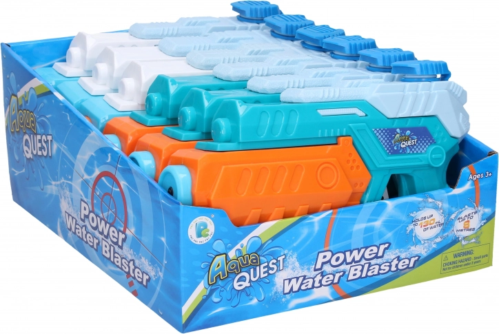 Pușcă cu apă amuzantă ideală pentru jocuri de vară în grădină sau pe plajă. Disponibilă în două culori vii, albastru și portocaliu.