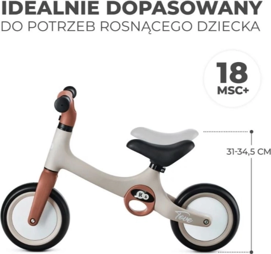Bicicleta de echilibru TOVE se remarcă printr-o construcție unică, materiale robuste și totodată ușoare și o greutate redusă: doar 2 kg. Este potrivită pentru copii de la 18 luni până la 25 kg. Prin joc sprijină dezvoltarea echilibrului și a abilităților motorii. TOVE este echipată cu două mânere pentru transport, care ușurează plimbările părinților cu copiii ce se plictisesc repede. Asamblarea bicicletei de echilibru necesită doar 3 pași simpli și este gata de utilizare. TOVE are șa reglabilă și mânere antiderapante pe ghidon. Un mare avantaj îl constituie și roțile ușoare din spumă - nu au spițe și nu necesită pompare.
