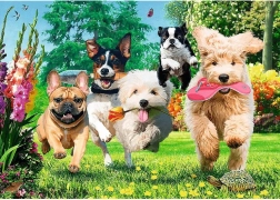 Descoperă un puzzle frumos realizat din colecția Tea Time, care te poartă într-o lume a culorilor, emoțiilor și energiei vesele. Motivul viu, cu câini într-o grădină înflorită, se remarcă prin ilustrație detaliată și culori intense, făcând asamblarea o adevărată plăcere. Puzzle-ul final, cu dimensiuni de aproximativ 68,3 × 48 cm, este perfect și pentru înrămare.