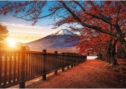 Bucură-te de o imprimare precisă, cu culori vii și detalii fine – aleea de toamnă, balustrada de lemn și muntele măreț creează o scenă perfect armonioasă.