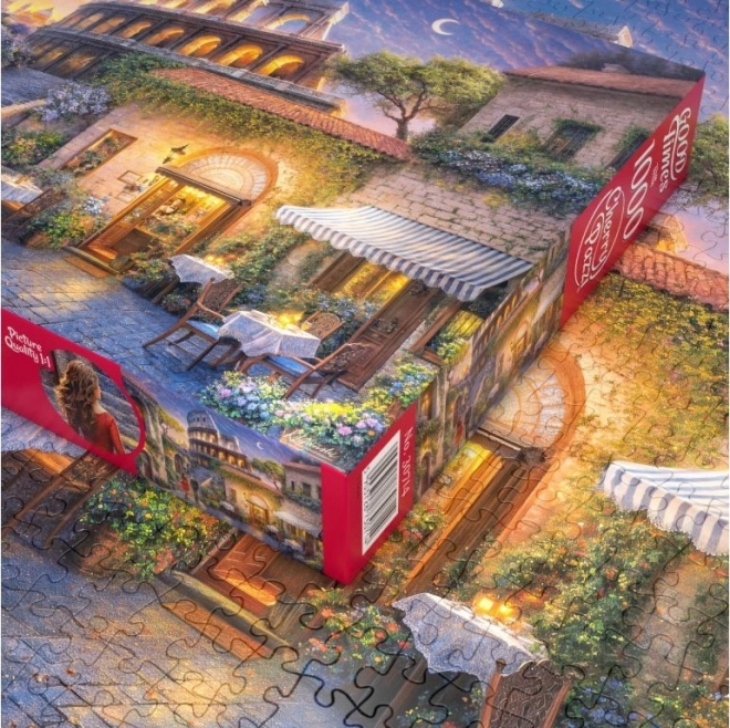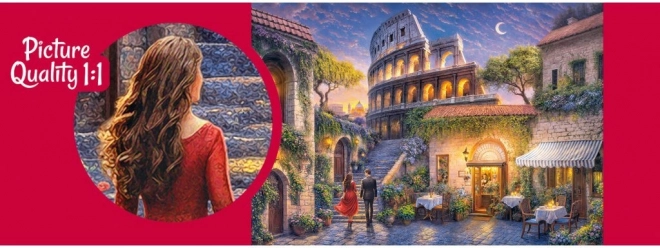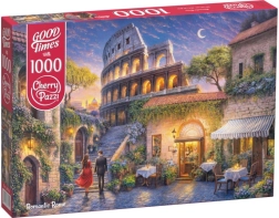 Trăiți atmosfera unică a Romei la apus prin acest puzzle de 1000 de piese de la CherryPazzi, cu o imagine romantică a unui cuplu îndrăgostit care se îndreaptă spre Colosseumul luminat. Această imagine este ideală pentru orice iubitor al Romei și al romantismului.
