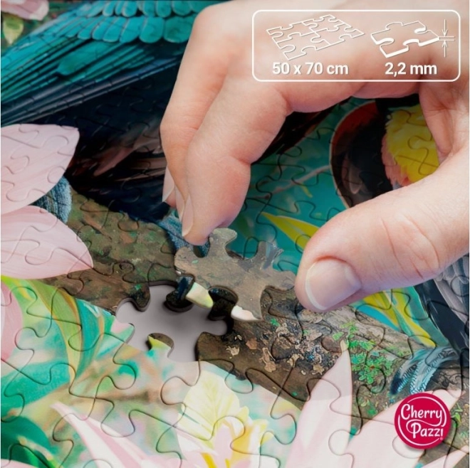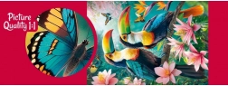 Puzzle Tucani în Paradis aduce distracție și relaxare cu cele 1000 de piese ale sale. Asamblarea imaginii unei peisaje exotice colorate este ideală pentru întreaga familie.