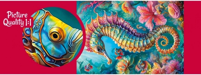 Puzzle Cal de mare cu 1000 de piese oferă o modalitate ideală de a te relaxa și în același timp de a-ți stimula celulele creierului. Acest puzzle reprezintă un cal de mare uimitor, care va încânta cu siguranță toți iubitorii de fauna marină.