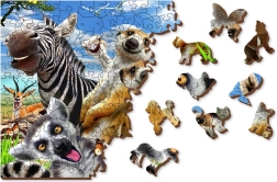 WOODEN CITY aduce un puzzle care se distinge prin calitatea sa superioară de execuție. Datorită tăierii cu laser, piesele sunt fabricate cu precizie, ceea ce asigură margini netede fără așchii. Vă puteți aștepta la un puzzle reversibil cu motive din natura africană.