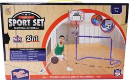 Setul susține dezvoltarea coordonării, preciziei și colaborării în echipă. În pachet se află două mingi (fotbal 14 cm, baschet 12 cm) și o pompiță, astfel încât puteți începe să jucați imediat după asamblare.