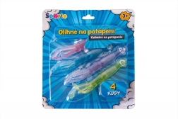 Set distractiv cu patru calmari scufundători pentru înotători mici și mari. După aruncarea în apă se scufundă rapid, iar copiii trebuie să îi recupereze, antrenând astfel scufundarea, coordonarea și siguranța în apă.