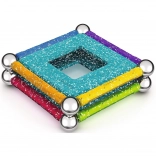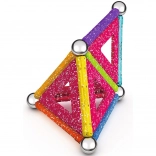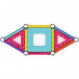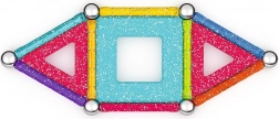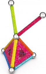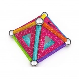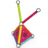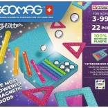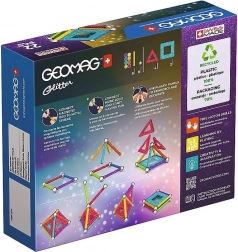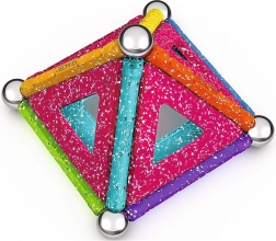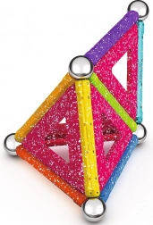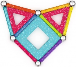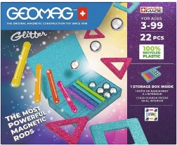 Geomag Glitter aduce un aspect strălucitor clasicelor seturi magnetice de construcție. Setul de 22 de piese combină bețe sclipitoare colorate, bile de oțel netede și panouri translucide care se conectează cu ușurință în structuri solide. Ideal pentru învățare prin joacă și relaxare creativă.