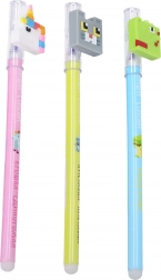 Un pix cu gumă ștergătoare, drăgălaș, cu model de animăluțe, oferă scriere fină de 0,5 mm, ștergere curată fără urme și prindere comodă pentru utilizare zilnică la școală și la birou. În pachet se află 36 de bucăți într-un display box și sunt disponibile diferite motive cu animăluțe.