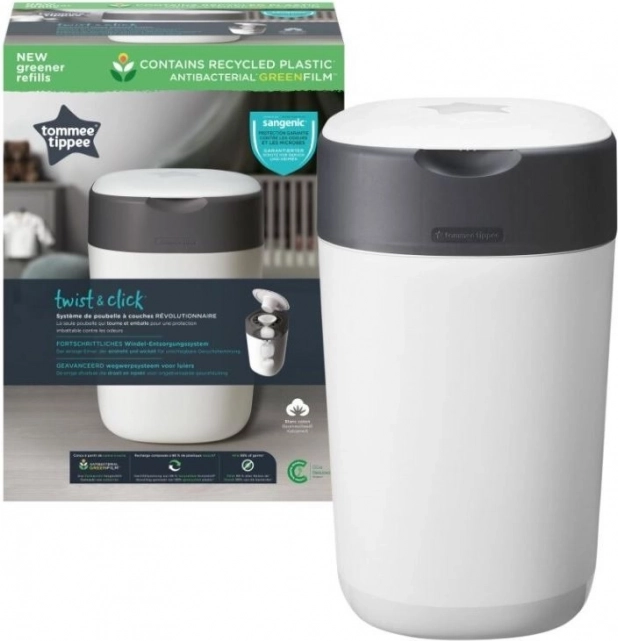 Tommee Tippee Twist & Click este un coș unic pentru scutece care răsucește și sigilează fiecare scutec, izolând astfel mirosurile și bacteriile, asigurând curățenia în casă.