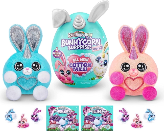 Mic, dar fermecător – iepurașul Boo‑Boocorn din seria RAINBOCORNS aduce copiilor bucuria surprizelor și a îmbrățișărilor pufoase. În fiecare ou vei găsi un iepuraș de pluș cu urechiușe sclipitoare, codiță pufoasă și alte accesorii mici pentru joacă și colecționare.