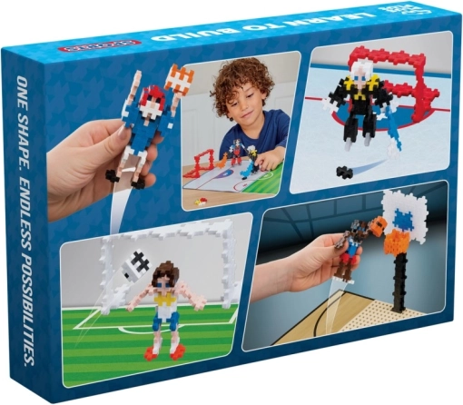 Plus-Plus Învață să construiești – Sporty este un set de construcție distractiv și educativ, cu care copiii pot crea cu ușurință scene sportive – jucători, porți, mingi și întregul teren. Piesele se îmbină simplu, rămân bine fixate și permit construcții 2D și 3D.