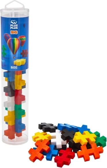 PLUS-PLUS BIG Basic este un set de construcție sigur și distractiv, cu piese mari care se îmbină ușor pentru modele plane și 3D. Tubul practic cu 15 piese este grozav pentru călătorii, la restaurant sau pentru joacă rapidă acasă. Copiii își exersează coordonarea mână–ochi, culorile și formele și, în același timp, învață răbdarea și concentrarea.