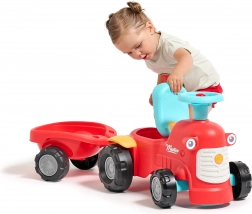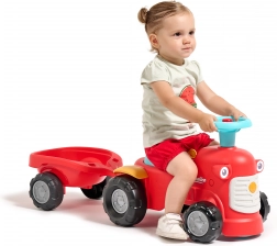 Împingătorul distractiv și stabil în stil tractor, cu remorcă, îi va încânta pe micii șoferi de la 12 luni. Oferă deplasare sigură, roți din plastic durabile, punte față rotativă pentru manevrare ușoară și claxon pentru încă și mai multă distracție. Spațiul de depozitare sub șezut și remorca detașabilă stimulează imaginația și motricitatea copiilor.