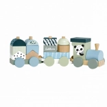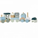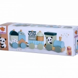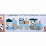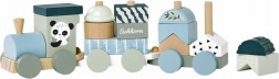 Paleta delicată albastru‑verde și motivul simpatic cu panda atrag privirea din primul moment și stimulează imaginația copiilor în timpul jocului și al construcției.
