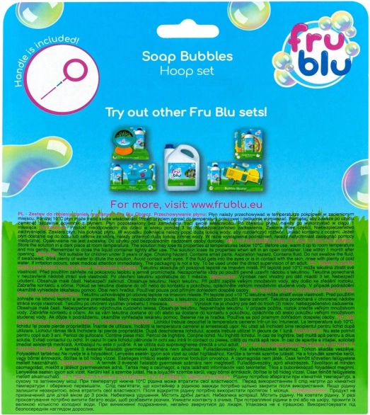 Descoperiți noutatea de sezon – setul compact FRU BLU cu inel și soluție de 0,4 l. Veți aprecia asamblarea ușoară și depozitarea facilă, fiind ideal pentru grădină, parc și vacanță. Este suficient să turnați soluția într-un bol plat, să înmuiați inelul și, prin mișcări fluide, să creați baloane uriașe și lucioase.