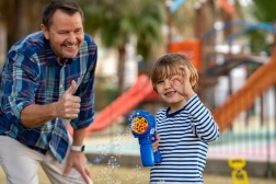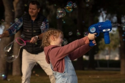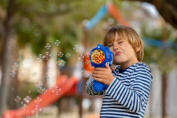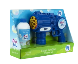 Lansatorul de bule Fru Blu eliberează cu viteză mare o cantitate uriașă de bule și oferă copilului dumneavoastră ore întregi de distracție. Bulele sunt iluminate de o lumină LED care le evidențiază culorile unice. Datorită utilizării ușoare și recipientului pentru lichid rezistent la vărsare, suflatul de bule este o activitate grozavă pentru copiii mai mari și mai mici. Setul include jucăria lansator de bule și o sticlă de 0,4 litri cu lichid. Sunt necesare baterii: 3 x AA. Bateriile nu sunt incluse. Jucăria este potrivită pentru copiii cu vârsta peste 3 ani.