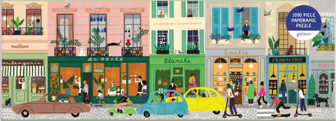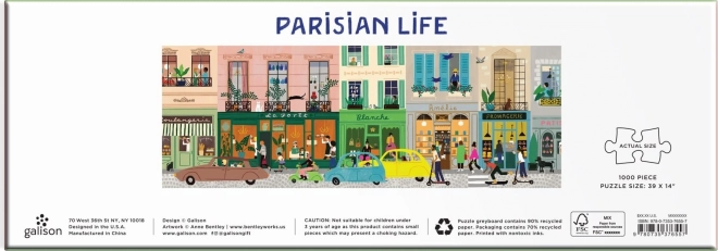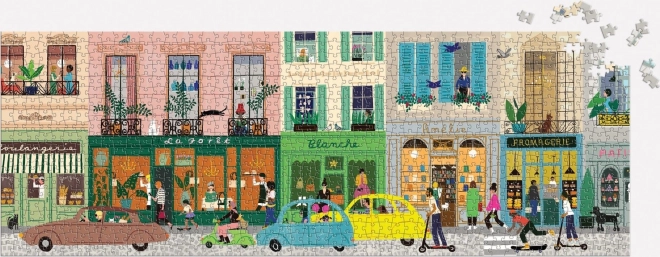 Puzzle-ul panoramic „Viața pariziană” vă aduce experiența romanticului Paris. Opera creată de artista Anne Bentley surprinde farmecul de modă veche al cartierelor precum Le Marais. După asamblare, puzzle-ul are dimensiunile 99 x 35,4 cm, o mărime excelentă pentru decorarea interiorului.