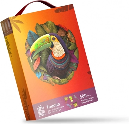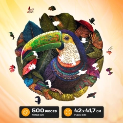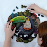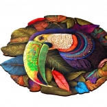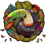 Imprimarea UV detaliată evidențiază tucanul exotic și frunzele din junglă. Puzzle-ul final devine o decorare de perete atrăgătoare.