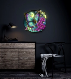Acest puzzle rotund din lemn, cu un motiv impresionant de fluture în nuanțe de albastru-violet, aduce culori perfect clare datorită imprimării digitale UV și unei execuții artizanale atente. Fiecare piesă este unică, netedă la atingere și se potrivește precis, asigurând o experiență plăcută și fluentă de asamblare. Cu un diametru de 42 cm, puzzle-ul final devine o decorațiune originală de perete.