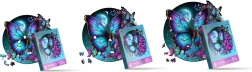 După asamblare obții o piesă de artă rotundă cu un fluture albastru și flori, care va ieși în evidență pe orice perete. Datorită foliei și autocolantelor incluse, puzzle-ul se fixează și se expune cu ușurință.