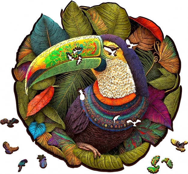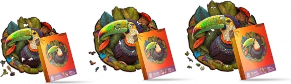 Fiecare piesă este tăiată cu precizie cu laser pentru o exactitate și netezime perfecte. Puzzle-ul prezintă o imagine frumoasă a Tucanului, imprimată cu ajutorul tehnologiei moderne de imprimare digitală UV, care oferă culori cu adevărat vii și realiste.