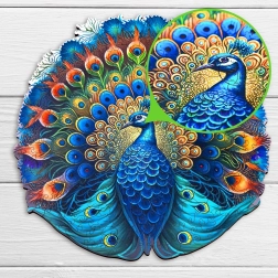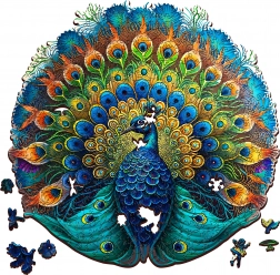 Acest puzzle din lemn sub formă de păun impresionează prin designul său superb și culorile vii. Datorită tiparului digital UV, culorile devin mai reale și încântă fiecare iubitor al artei de puzzle.
