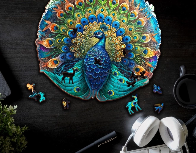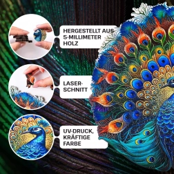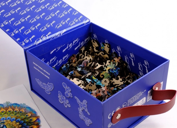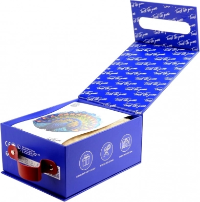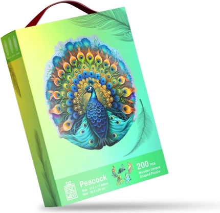 Bucurați-vă de o experiență unică cu puzzle-ul din lemn cu motiv de păun! Fiecare dintre cele 200 de piese este tăiată cu laser cu precizie, asigurând o potrivire perfectă și netezime. Datorită tehnologiei moderne de imprimare digitală UV, puzzle-ul aduce culori realiste și vii în fiecare piesă.