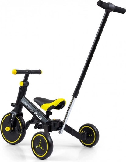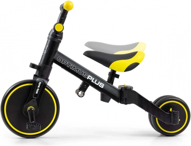 Bicicleta Optimus Plus este concepută pentru a deveni una dintre cele mai bune alegeri pentru primul vehicul al copilului tău. Datorită construcției stabile cu trei roți, oferă copilului nivelul corect de siguranță și ușurează învățarea de noi abilități. De îndată ce copilul stăpânește bazele mersului și nu mai are nevoie de ajutorul părintelui pentru a controla ghidonul la direcție, putem adăuga pedale sau o putem transforma într-o bicicletă clasică de cross.