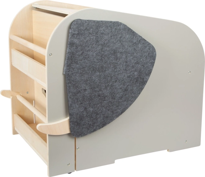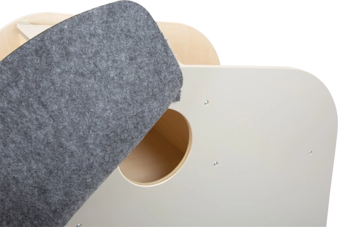 - Design sustenabil: lemn natural și fetru de calitate, culori delicate, margini rotunjite.