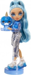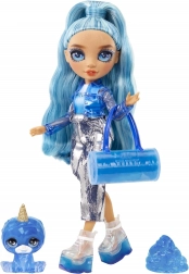 Păpușa stilată Skyler din colecția Rainbow High Classic Rainbow Fashion vine cu păr lung albastru, o ținută lucioasă și un set bogat de accesorii. În pachet găsești și slime cu care poți decorea pantofii și geanta, creând combinații de modă unice.