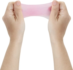 Slime-ul gelatinos roz poate fi întins, modelat și folosit la decorarea pantofilor sau a genții transparente. Un joc tactil distractiv care stimulează creativitatea și originalitatea.