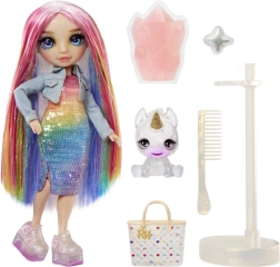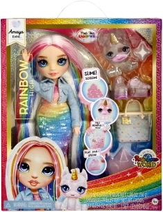 Setul include un însoțitor unicorn drăgălaș și slime gelatinos pe care îl poți întinde, strânge și folosi pentru decorarea accesoriilor – geantă transparentă sau pantofi cu platformă. După despachetarea inițială, este suficientă o spălare ușoară a părului pentru a fi mătăsos și strălucitor. Colecția este completată de personaje îndrăgite precum Violet, Skyler, Jade, Sunny și Ruby – adună-le și creează-ți propria lume curcubeu.