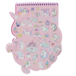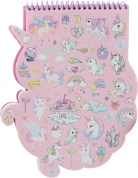 Coperți decupate în formă de dinozaur sau unicorn și spirală superioară pentru răsfoire confortabilă și un aspect jucăuș.