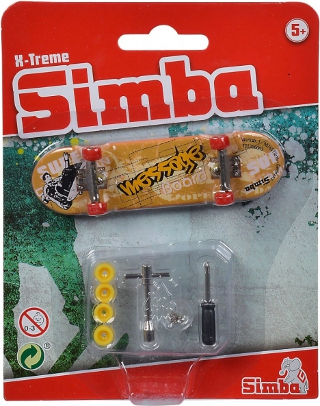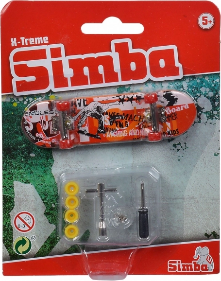 Mini fingerboard X‑TREME de la SIMBA pentru trucuri distractive cu degetele, în mix de 6 designuri. Este complet asamblat, are roți care se învârt rapid și grafică grozavă. Ajută excelent la antrenarea coordonării și oferă distracție antistres. Sunt incluse unelte și roți de rezervă. Modelul este ales aleatoriu, preț pentru 1 bucată.