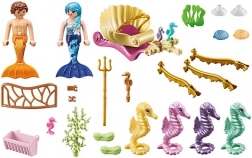 Pornește într-o aventură în adâncul oceanului și trăiește din plin fantezia. Acest set detaliat aduce o trăsură subacvatică strălucitoare, patru căluți de mare mari și două figurine de zâne ale mării. Seria PLAYMOBIL Princess Magic susține jocul creativ și povestirea proprie pentru copiii de la 4 ani în sus.