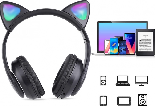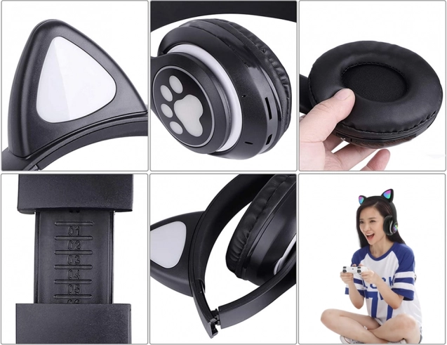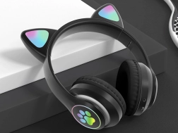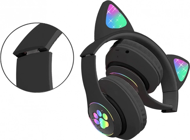 Căști wireless stilate cu urechi de pisică și iluminare RGB LEDconfortul, sunetul de calitate și funcții multifuncționale. Suportă Bluetooth 5.0, redare de pe micro SD, au radio FM și microfon încorporat pentru apeluri hands‑free. Pernele moi și construcția ușoară, pliabilă, asigură confort chiar și la ascultare prelungită.