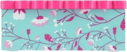 Corpul turcoaz cu flori și capacul roz creează un accesoriu jucăuș, dar rafinat, potrivit atât pentru camera copiilor, cât și pentru dormitor.