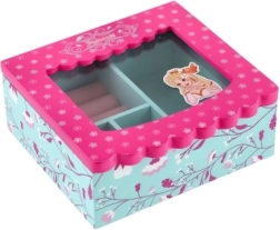 În interior găsești compartimente organizate practic, care păstrează bijuteriile separate și protejate. Datorită construcției solide din lemn și balamalelor fiabile, cutia de bijuterii nu este doar frumoasă, ci și rezistentă pentru utilizarea zilnică. Designul ingenios este potrivit ca ambalaj de cadou și ca decorațiune pentru camera copiilor.