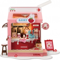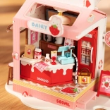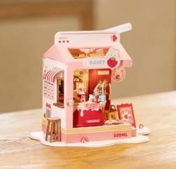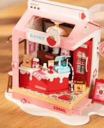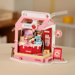 Descoperă farmecul lumii miniaturale cu căsuța Milk Bar Strawberry. Această machetă creativă de la Robotime te va încânta prin detalii realiste, design jucăuș și iluminare LED plăcută. Asamblarea este relaxantă, iar rezultatul va fi o decorațiune fermecătoare pentru raft sau birou.