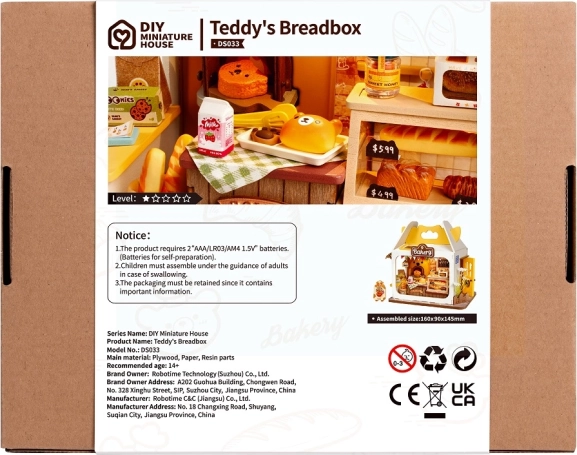 Brutăria lui Ursuleț este o miniatură fermecătoare pentru toți cei care iubesc creația și designul. Setul include tot ce este necesar pentru asamblare, inclusiv adeziv și unelte; este suficient să adaugi o foarfecă. La pornirea iluminării LED, brutăria se transformă într-o lumină caldă și primitoare, care evidențiază fiecare detaliu al vitrinelor, etichetelor și produselor de panificație.
