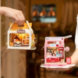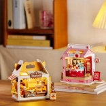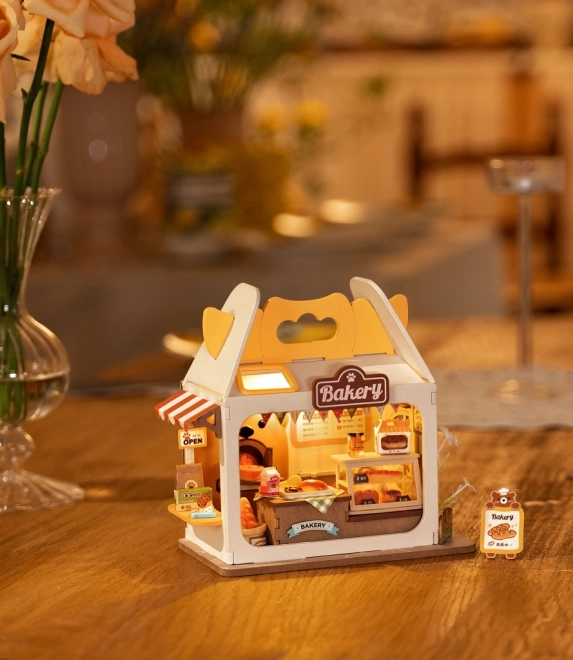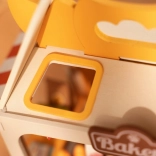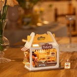 După asamblare, brutăria mini se luminează cu un LED integrat – ideală ca veioză de noapte și decorațiune pentru cameră.