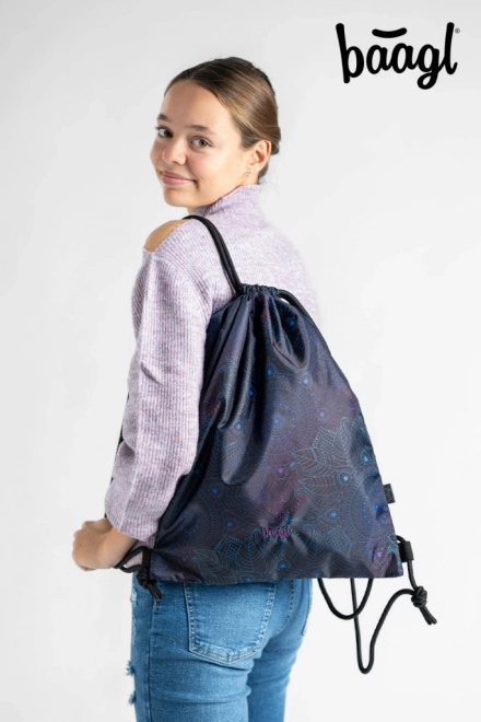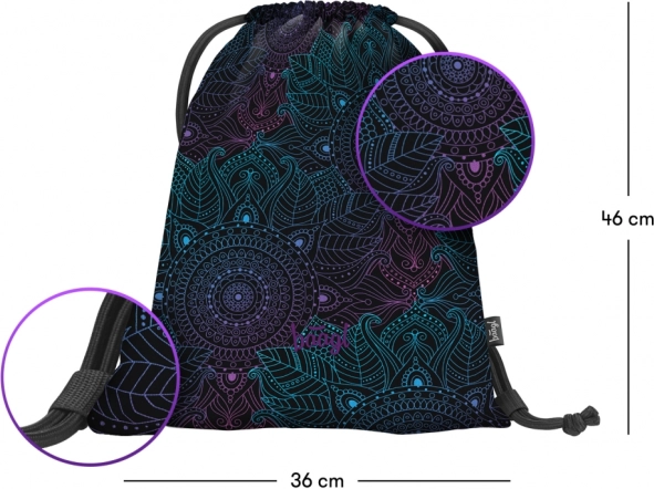 Săculețul practic și ușor BAAGL Zen impresionează prin designul modern cu mandală în tonuri de mov și turcoaz pe fundal negru. Este potrivit pentru încălțăminte, echipament sportiv și mărunțișuri pe care vrei să le ai mereu la îndemână. Datorită materialului rezistent și lavabil, face față cu ușurință utilizării zilnice.