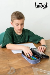 Penar școlar BAAGL practic și rezistent cu motiv NASA, oferă organizare clară a instrumentelor de scris datorită separatorului rabatabil, buzunarului interior cu fermoar și buzunarului pentru orar. Fabricat din material reciclat și echipat cu fermoare YKK de calitate. Fără conținut.