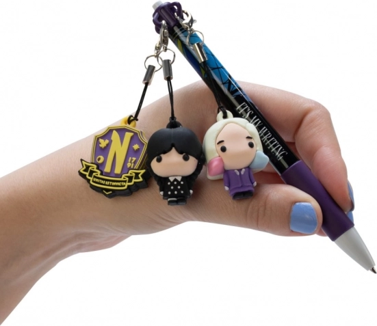 Îmbogățește-ți necesitățile de scriere cu pixul cu bilă Mini Pen Pals Wednesday, având un design fermecător și pandantive de colecție. Acest pix este ideal pentru toți iubitorii de scriere creativă și obiecte de colecție. Datorită aspectului său decorativ te va inspira la idei noi.