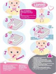 Păpușa este lucrată manual în Spania, vine într-o cutie cadou și este gata de utilizare imediat după scoaterea siguranței. În pachet sunt incluse 3× baterii tip pastilă LR44 și instrucțiuni pentru înlocuirea lor. Pentru a extinde joaca, poți achiziționa haine originale Llorens pentru mărimea 33 cm.