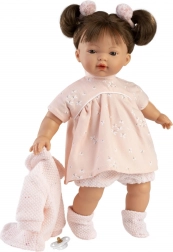 Păpușa poartă o rochiță asortată, un pulover și șosete. Pentru și mai multă distracție poți cumpăra separat haine originale Llorens pentru păpuși de 33 cm.