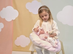 În pachet este inclus un set de haine din două piese și o pernuță, astfel încât copiii se pot juca de-a adormitul sau schimbatul. Păpușa are mâini, picioare și cap mobil, ceea ce susține dezvoltarea motricității fine și joaca creativă. Ideală ca dar pentru micile îngrijitoare și colecționare de păpuși.