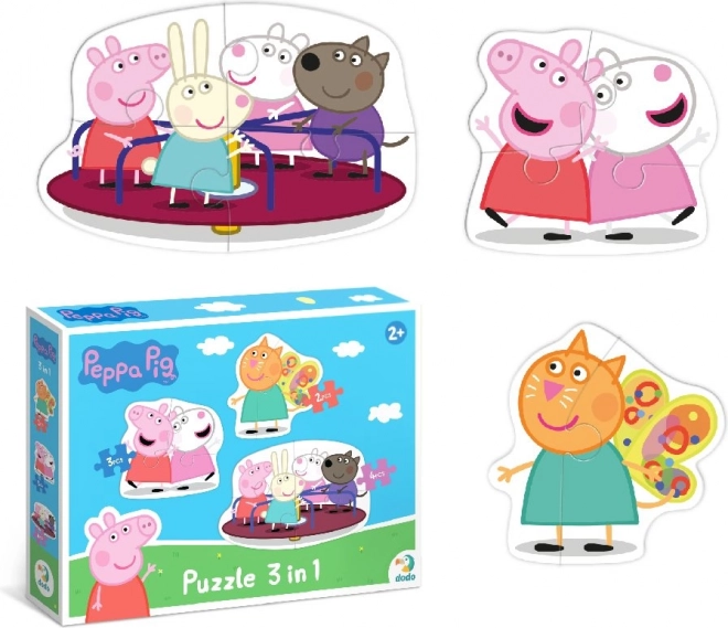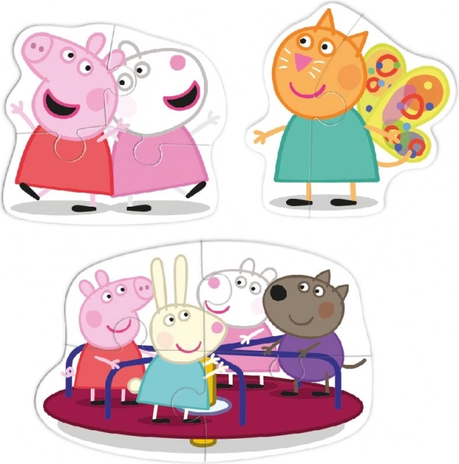 Descoperă puzzle-uri distractive pentru copii cu tema îndrăgitului serial Peppa Pig. Setul conține 3 imagini contur cu un număr diferit de piese (2, 3 și 4), care susțin dezvoltarea imaginației, gândirii logice și a motricității fine.
