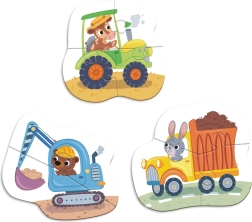 Descoperiți puzzle-uri contur amuzante cu mijloace de transport pentru cei mici. Setul oferă trei puzzle-uri cu un număr diferit de piese (2, 3 și 4), care susțin dezvoltarea imaginației, gândirii logice și motricității fine.