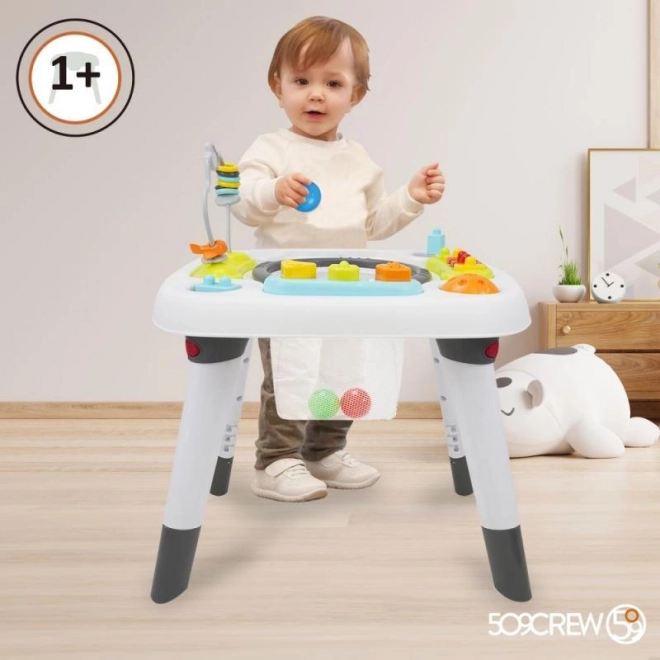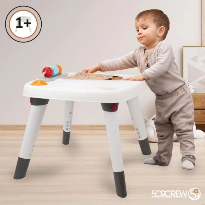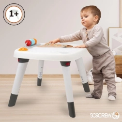 Masa este concepută să crească împreună cu copilul dumneavoastră, oferindu-le utilitate pe termen lung. Este potrivită pentru copii de la 6 luni și se livrează fără baterii, necesare pentru funcționarea unor elemente interactive.